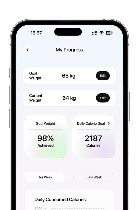 In our app, you can track: Your weight, Your daily calorie goal, Overall weekly and monthly progress of losing or gaining weight